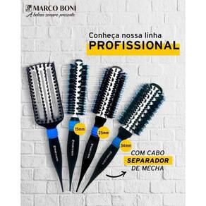 Escova Profissional Azul 25mm Ref. 7382 - Marco Boni - A Escova Profissional Azul da Marco Boni possuem cerdas de dupla altura, com as tufas retas sendo ideal para secagem e escovação dos fios. Seu formato cilíndrico e diâmetro de 25mm, permite que em cabelos de tamanho médio, corra de maneira prática e fácil. Seu cabo emborrachado com separador de mechas, proporciona melhor agilidade em seu - Manuseio e melhor repartição dos cabelos. - Modo de Uso: Deslize a escova suavemente entre os fios, desembaraçando as mechas e deixando os fios alinhados. - Embalagem: 1 Escova Profissional