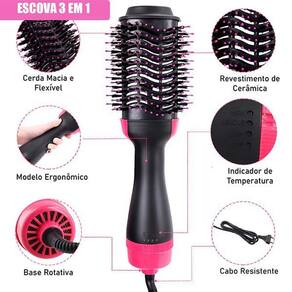 Com essa escova 3 em 1, você tem a solução completa para secar, alisar e estilizar seu cabelo, garantindo um acabamento impecável em pouco tempo.