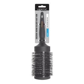 Escova térmica de cerâmica ideal para modelar e criar cachos em cabelos muito longos. Cerdas ionizadas contra o frizz. Escova de cabelo redonda com base térmica vazada de cerâmica e cerdas de nylon ionizadas tamanho extra grande.