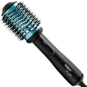 Ela seca, alisa, modela e dá volume. Suas cerdas laterais de dupla altura tracionam os fios, resultando em um efeito de brilho e polimento.