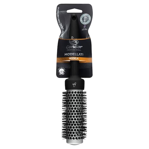 Escova para cabelo Modellati contém cerdas com íons negativos, que evitam o frizz nos cabelos. Base vazada em cerâmica, retém o calor do secador, agilizando o brushing sem danificar os cabelos. Cabo emborrachado que proporciona maior ergonomia e firmeza ao escovar.