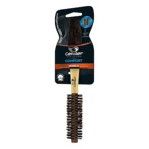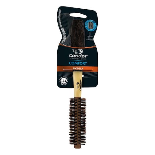 Escova com a base de madeira revestida com metal, o que potencializa o calor do secador, facilitando a secagem dos cabelos. O cabo é emborrachado e impermeável, o que impede a formação de calosidade nas mãos. Cerdas sintéticas e naturais de javali, que proporcionam brilho aos cabelos. Para todos os tipos de fios. Alisa e modela cabelos curtos.