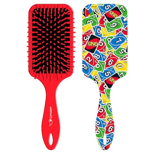 O jogo de cartas mais viral do mundo ganhou uma linha de produtos personalizada para te ajudar nos cuidados diários. A Escova para Cabelo Raquete Uno Condor possui tamanho e formato ideais para desembaraçar cabelos longos com rapidez.