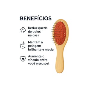 Escova Para Cães e Gatos Pelo Médio Madeira HomePet A Escova de Madeira HomePet é ideal para manter a pelagem do seu pet sempre bonita, saudável e sem nós. Indicada para cães e gatos de pelo médio, possui cabo anatômico em madeira e pinos metálicos com pontas arredondadas que não machucam a pele do animal.