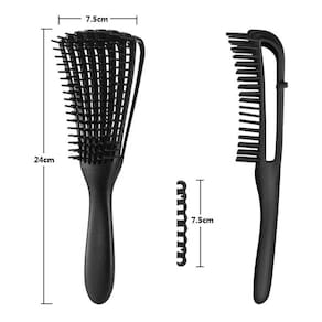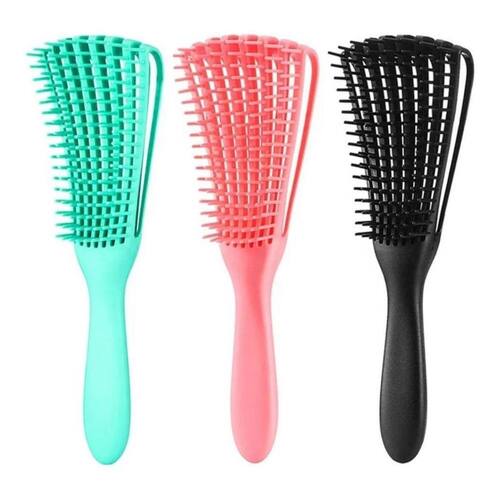 Escova para Desembaraçar Cabelos Cacheados 1.Adequado para cabelos crespos ondulados, cacheados, crespos, úmidos, secos, oleosos, grossos, longos ou emaranhados 3a a 4c. As agulhas são redondas e as cerdas são separadas, o que pode remover os nós e pentear os cachos sem puxar o cabelo ou danificar o couro cabeludo