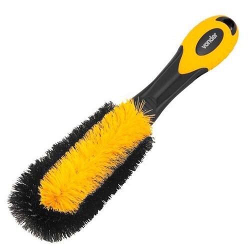 Detalhes da Escova para Furo de Rodas Vonder: Indicada para limpeza de rodas. Conhecida como escova tipo pepino, possui cerdas fixadas em estrutura de arame resistente e flexível, permitindo deixá-la em diferentes formatos para penetrar e limpar em áreas de difícil acesso.