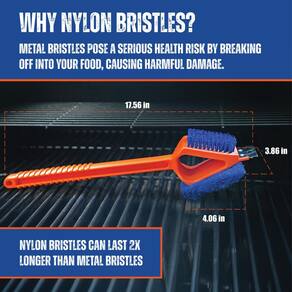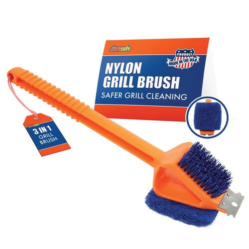 CitruSafe Escova de nylon 3 em 1 com raspador e esfregão – Feito nos EUA – Escova segura – Escova de grelha com cerdas não metálicas – Escovas de churrasco para limpador de churrasqueira – Escova não