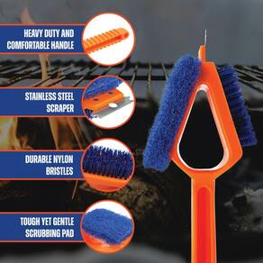 - Ferramenta de limpeza versátil: escova de grelha de nylon de cabeça dupla, esfregador e raspador lida com qualquer tarefa de limpeza da grelha. Cerdas de nylon resistentes e almofada de limpeza limpam completamente sua churrasqueira externa