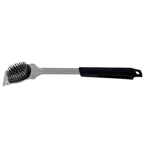 INFORMAÇÕES GERAIS DA ESCOVA PARA GRELHAS TRAMONTINA EM AÇO INOX COM RASPADOR - Escova com estrutura e cerdas de aço inox. - Cabo de polipropileno com maior resistência e durabilidade.