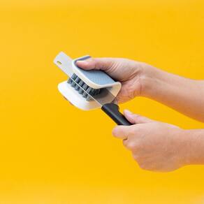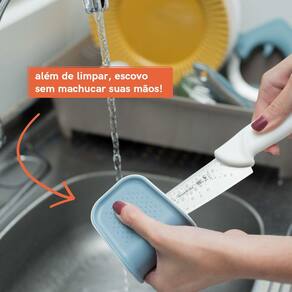 Essa é a escova para lavar talheres da OIKOS. Por que ela é tão incrível? – você se pergunta. A gente responde: ela é muito mais segura que uma esponja comum e protege sua mão contra cortes. Garante uma limpeza mais eficaz de forma muito mais rápida – ela limpa os dois lados de uma só vez.