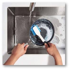 A escova de limpeza da Oxo faz um trabalho rápido para limpar alimentos assados e gordura. As cerdas de nailon duráveis e o raspador embutido são ideias para panelas antiaderentes. A alça macia e antiderrapante oferece uma pegada segura, mesmo quando molhada.Ficha técnica:- Código: 4080570710- Marca: OXO- Conteúdo da embalagem: 1 Escova- Especificações do produto:Cerdas duráveisRemove gorduras com rapidezSegura em panelas antiaderentesRaspador embutido que remove pontos assadosPegador antiderrapante- Material: Nailon- Peso: 0,22kg- Dimensões do produto: 27,94cm x 6,68cm x 1,91m (AxLxP)- Garantia: 3 meses