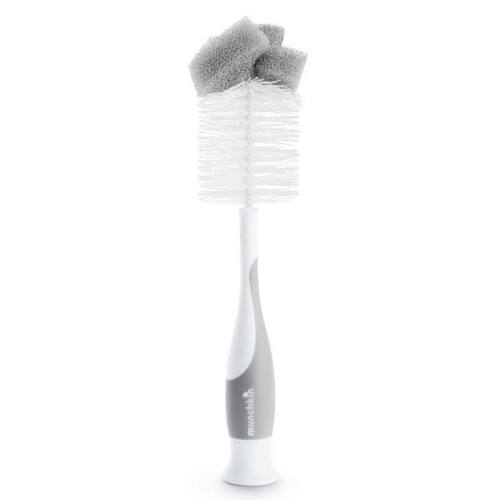A Escova Para Mamadeira - Munchkin serve tanto para lavar mamadeiras quantos bicos, possui uma esponja em sua ponta, para facilitar a limpeza dos pontos mais difíceis, a escova para bicos encaixa-se perfeitamente dentro do cabo quando não em uso.