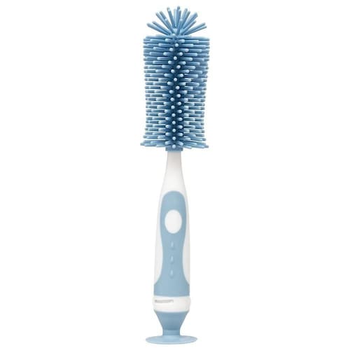 A Escova para Mamadeira E Bico da Buba é um acessório para limpeza 2 em 1, ideal para lavar garrafas e mamadeiras, pois atinge áreas difíceis de serem alcançadas. A escova possui cerdas macias e resistentes possibilitando uma perfeita higienização sem danificar o produto, sendo uma escova prática e eficiente para bico destacável que encaixa dentro do cabo da escova maior feita em silicone super macio, com um cabo antiderrapante e uma ventosa para mantem a escova em pé e evita que estrague ao apoiá-la na superfície.- Ventosa na base para fixar nas surperfícies- Cerdas de Silicone 360o- Livre de BPA- Cabo antiderrapanteContém: 1 escova para mamadeiras e copos; 1 escova para bicos e tampas.Composição: Polipropileno; Borracha Termoplástica; Silicone.Dimensões Sem Embalagem : 5cm x 27,4cm x 5cm