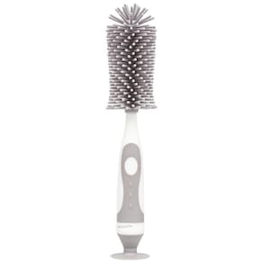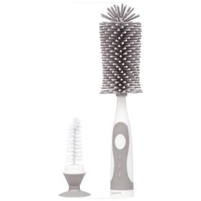A Escova para Mamadeira E Bico da Buba é um acessório para limpeza 2 em 1, ideal para lavar garrafas e mamadeiras, pois atinge áreas difíceis de serem alcançadas. A escova possui cerdas macias e resistentes possibilitando uma perfeita higienização sem danificar o produto, sendo uma escova prática e eficiente para bico destacável que encaixa dentro do cabo da escova maior feita em silicone super macio, com um cabo antiderrapante e uma ventosa para mantem a escova em pé e evita que estrague ao apoiá-la na superfície.- Ventosa na base para fixar nas surperfícies- Cerdas de Silicone 360o- Livre de BPA- Cabo antiderrapanteContém: 1 escova para mamadeiras e copos; 1 escova para bicos e tampas.Composição: Polipropileno; Borracha Termoplástica; Silicone.Dimensões Sem Embalagem : 5cm x 27,4cm x 5cm
