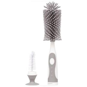 A Escova para Mamadeira E Bico da Buba é um acessório para limpeza 2 em 1, ideal para lavar garrafas e mamadeiras, pois atinge áreas difíceis de serem alcançadas. A escova possui cerdas macias e resistentes possibilitando uma perfeita higienização sem danificar o produto, sendo uma escova prática e eficiente para bico destacável que encaixa dentro do cabo da escova maior feita em silicone super macio, com um cabo antiderrapante e uma ventosa para mantem a escova em pé e evita que estrague ao apoiá-la na superfície.