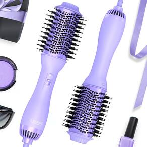 Apresentamos o modelador e volumizador de secador de cabelo LANDOT One-Step - uma versão atualizada 2.0 da popular escova de ar quente. Esta ferramenta versátil combina o poder de um secador de cabelo com as capacidades de estilo de uma escova redonda, permitindo que você seque e estilize seu cabelo simultaneamente. O barril de titânio de cerâmica oval de 60 mm com tecnologia de íons negativos ajuda a minimizar o frizz, deixando suas mechas lisas e brilhantes. Seu design ergonômico e cor roxa o tornam uma adição elegante à sua rotina de cuidados com o cabelo. Perfeita para criar estilos volumosos ou visuais elegantes e lisos, esta escova de secador de cabelo multifuncional é um item essencial para um estilo sem esforço em casa ou em movimento. Com sua facilidade de uso e resultados impressionantes, esta escova de ar quente certamente se tornará sua companheira de penteado. - ?Secagem 3 em 1, alisamento e volume do cabelo?Design exclusivo de escova oval de 60 mm (2,4 polegadas) para alisar o cabelo, enquanto as bordas redondas criam volume. Projetado com pino de nylon e cerdas tufadas para desembaraçar, melhorar o volume e controle, perfeito para refrescar o cabelo do segundo dia. Ao contrário dos secadores de cabelo convencionais, este volumizador pode ser colocado mais perto do seu couro cabeludo para elevação máxima - Elimina o frizz. Tecnologia de íons diretos para promover uma secagem mais rápida e criar estilos cheios de cabelos mais brilhantes e saudáveis; enquanto a superfície de modelagem é projetada com a incomparável tecnologia de titânio de cerâmica para distribuição uniforme de calor e resultados consistentes para todos os tipos de cabelo - ?Mais cuidado com o seu cabelo?Esta escova de secador de cabelo é uma escova para modelar e secar e volumizar seu cabelo em uma etapa, poder máximo de secagem com 30% menos frizz e ajuda a reduzir os danos ao cabelo. Resolveu o problema de que a maioria dos secadores de cabelo deixará seu cabelo seco ou até queimado - ?Serve para todos os tipos de cabelo?3 configurações de calor/velocidade com opção Cool oferecem versatilidade de estilo e ótimos resultados em todos os tipos de cabelo. Salon Blowout na metade do tempo. Secagem mais rápida e resultados de salão - ?100% felicidade?O secador de cabelo e volumizador atende aos requisitos de segurança dos EUA e possui o selo de certificação ETL (procure o botão "teste" no plugue que é necessário para todos os secadores de cabelo nos EUA), a unidade é projetada apenas para tomadas de 120 volts nos EUA. Não use um conversor de voltagem ou adaptador, pois isso danificará a unidade. Observe que a potência deste aparelho pode variar dependendo do local de uso. Se precisar de 220 V para outros países; verifique a Amazon no país para tensão e plugue corretos
