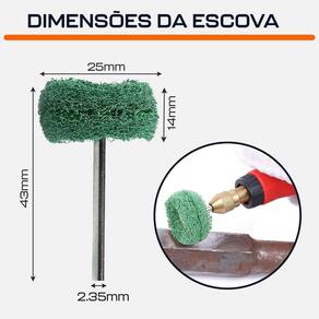 Escova de Polimento Nylon 25mm Grão 180 com Haste 2.35mm para Micro Retíficas Dremax - Marca: Dremax - Referência: EPN007 - Cor: Verde - Material: Fibra do nylon - Gramatura: Grão 180 grosso-médio - Diâmetro da escova: 25mm 1 Pol. - Espessura aproximada da escova: 14mm - Diâmetro da haste: 2,35mm 3/32 Pol. - Comprimento: 43mm - Modelo exclusivo com 3 camadas de espessura, mas eficaz e durável que os concorrentes - Escova tipo Scotch Brite - Velocidade de trabalho recomendada: 2.000 a 12.000rpm - As escovas almofadas de polimento são usadas em polimento madeira, metal, polimento de pedra etc. , gravura, moagem, lixamento e limpeza - Ideal para limpeza, desbaste e polimento de todos os tipos de joias e metais preciosos. - Acessório indicado para joalheiros, serralheiros, armeiros, técnicos, colecionadores de moedas, arqueólogos, estudantes, etc. - Indicado para todas as marcas de micro retíficas, como Dremel, Charbs, Einhell, Black+Decker, Dremax, Mondial, Vonder, Titanium, Western, Ingco, Gamma, Wesco, etc. - : 90 dias contra defeitos de fabricação A DREMAX é a primeira e única marca brasileira dedicada exclusivamente às micro retíficas, acessórios e acoplamentos para esta indispensável ferramenta. Seja para trabalhos de precisão, artesanato, modelagem ou reparos, a DREMAX tem o produto certo para você.