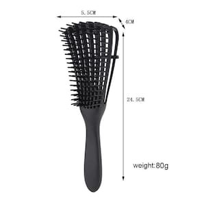 Obs: antes de usar a escova, é muito importante que os cabelos estejam úmidos ou com creme. Sempre molhe o cabelo ou passe um creme para desembaraçar ou pentear. As cerdas flexíveis não tencionam os fios, permitindo um desembaraço sem dor, pela metade do tempo e com 90% menos quedas ou quebras.