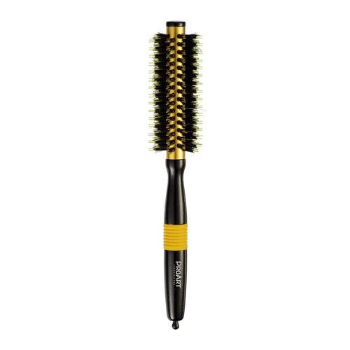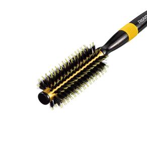 A Linha Metallic Pro ProArt possui cerdas inteligente em dupla altura para melhor tração dos fios facilitando o processo de escovação do cabelo. Seu corpo em aluminio aquece rapidamente e distribui o calor de maneira uniforme tornando o processo de brushing mais rápido promovendo mais brilho e maciez aos fios. Elas tem Cerdas Mistas naturais e de náilon de dupla altura que garantem maior tração da escova com o cabelo. E Cerdas retas, que ajudam a escova a derrapar pelo comprimento dos fios com facilidade. Cabo ergonômico com detalhes em borracha; Corpo térmico que agiliza a escovação por reter e distribuir melhor o calor do secador pelo comprimento da escova; Pino divisor de mechas; Ideal para alisamento dos fios; Variações em milímetros. 15mm/ 20mm /27mm /40mm. As Escovas Profissionais ProArt foram desenvolvidas para profissionais exigentes e especialistas. Modo de Uso: Deslize a escova no cabelo e vá modelando como desejar. Mantenha uma distância mínima de 5 a 10 centímetros entre o secador e a escova. Composição: Alumínio, madeira, borracha, nylon, cerdas naturais Aprox 28,5x6x4 Ean: 731509991918