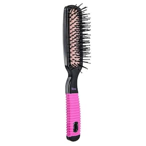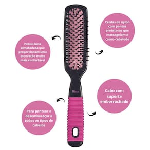 A Escova Reta Black & Pink possui base almofadada que proporcionam uma escovação muito mais confortável e cerdas de nylon com pontas protetoras que massageiam o couro cabeludo e cabo antideslizante.