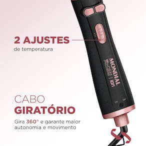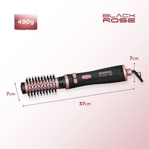 A Escova Rotativa Mondial Black Rose, 3 em 1, 1200 W, 2 temperaturas ERB01 deixa seus cabelos ainda mais bonitos e cuidados. Ele possui 1200 W de potencia e 3 funcoes: secar, alisar e modelar.