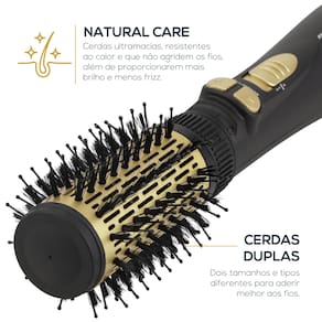 Com total versatilidade, ela se adapta ao seu estilo: são dois sentidos de rotação, duas velocidades e três níveis de temperatura, permitindo que você finalize diversos penteados com agilidade. Por ser um modelo 4 em 1, ela desempenha as funções de secar, alisar, escovar e modelar o volume, sendo a aliada ideal para qualquer ocasião. Além disso, o design conta com cordão giratório 360° de 1,80m e alça para pendurar, garantindo total liberdade de movimento e facilidade na hora de guardar.