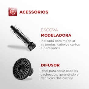 Funções: Seca, alisa, modela, define cachos e finaliza pontas e franjas