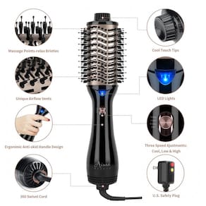 Marca: Aima Beauty Cor: Preto Brilhante, 5,8 cm de largura (escova oval) Material: Plástico Potência: 1100 watts Fonte de Alimentação: Elétrica com fio Marca: Não Informado