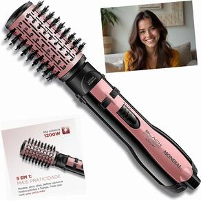 - **Modelo**: ER-10 - **Cor**: Golden Rose/Preto - **Voltagem**: 127V ou 220V (escolha a voltagem correta) - **Itens inclusos**: 01 Escova Rotativa, 01 Difusor de Cachos, 01 Escova Modeladora, 01 Bocal Direcionador, Manual de Instruções - **Peso**: 0,800kg - **Funções**: Seca, alisa, modela, define cachos e estiliza - **Garantia**: 1 ano - **Controle de temperatura**: Sim - **Níveis de temperaturas**: 3 Temperaturas - **Cabo giratório**: Sim - **Tecnologias**: Emissão de íons - **Revestimento**: Cerâmica com Tourmaline - **Potência**: 1200W - **Número de velocidades**: 3 Velocidades - **Dimensões**: Altura: 7.5 cm, Largura: 37 cm, Profundidade: 7.5 cm