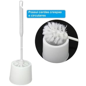 Escova sanitária com suporte de plastico redondo branco 32cm Escova sanitária com suporte de plastico redondo branco 32cm A funcionalidade e performance que facilitam durante a limpeza do seu banheiro. Produto indicado para lavagem e higienização do vaso sanitário, possui um suporte para deixar o banheiro organizado. Conhecida como vassoura para vaso sanitário, lavatina e também escova sanitária com pote. Esse modelo de escova banheiro, possui cerdas crespas e circulares que permite uma limpeza eficaz do vaso sanitário. Validade: indeterminada Tamanho aproximado: 32x9,5cm de Peso aproximado: 80g Tipo de produto: escova sanitaria com suporte redondo Cor: branco Composição: plastico e nylon