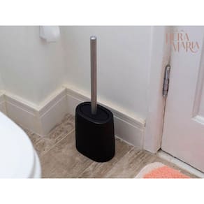Escova sanitaria privada vaso banheiro silicone e cerâmica Essa é a escova sanitária de silicone com suporte de cerâmica listras pretas da oikos. Prática: seu banheiro muito mais funcional e higiênico, esse item garante a limpeza correta do vaso sanitário. Ponta de silicone: o material flexível e o formato arredondado da escova possibilitam uma limpeza mais eficiente. Diferentemente da peça convencional, com este item você não precisa se preocupar com cerdas quebradas ou com sujeiras acumuladas na escova. Cabeça flexível: capaz de limpar todas as áreas dentro do vaso sanitário, especialmente as ranhuras. O produto alcança todos os cantinhos da privada. Toque suave: o material de silicone protege o vaso contra arranhões e outros danos. Superfície assimétrica: seu suporte é decorativo e traz para seus cômodos todo o charme da tendência industrial e contemporânea. Um item indispensável que também consegue transformar seus ambientes, além de encantar as visitas o tom preto fosco também deixa a casa mais moderna e suave. Características / medidasDimensões: 13 x 8 x 41cm l x p x a Cor: pretoMaterial: cerâmica, aço inox e silicone Conteúdo da embalagem:Contem: 01 escova sanitária de silicone com suporte de cerâmica - preto Cuidados: Para higienizar a escova sanitária basta deixar o produto de molho em um balde com água sanitária. Depois desse passo, leve para outro recipiente com água ou deixe por alguns segundos em água corrente e coloque para secar - esse processo pode ser feito apoiando no próprio vaso Acesse nossa página de vendedor para conhecer todos nossos produtos casa hera maria casaheramariadecorhomeheramariastoreheramariabanheiroprivadalimpezahigienepraticosiliconeinoxaço Dúvidas:Se atente a todas as características do produto, olhe as medidas, nome da cor, não se baseie apenas nas fotos e sim não deixe de ver a descrição para evitar comprar um produto que não atenderá sua necessidade, precisando só perguntar. Aqui seu é dinheiro garantido:Compra 100% seguraSe o seu produto chegar danificado, garantimos a devolução do seu dinheiro