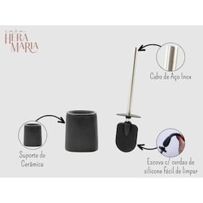 Conteúdo da embalagem: Contem: 01 escova sanitária de silicone com suporte de cerâmica - preto