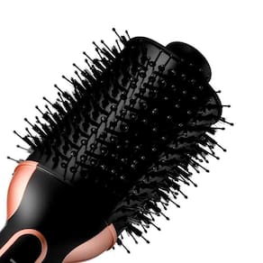 Cabeça com formato oval com laterais bem arredondadas para dar volume ou modelar. Lados com curvatura leve para utilizar quando o objetivo é alisar os cabelos. Seletor de voltagem para você utilizar sua escova em qualquer lugar.