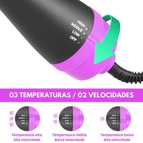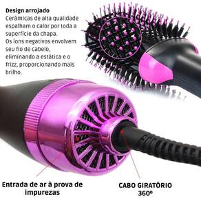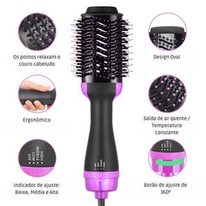 É ideal para todos os tipos de cabelos molhados ou secos. Sua versatilidade permite que seja utilizado como secador de cabelo, para dar volume aos fios, pentear os cabelos ondulados, cacheados ou alisar.