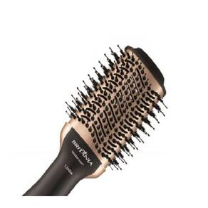 Características: Potência de 1200W; 3 em 1: Alisa, modela e seca; Revestimento em Nano Cerâmica: Com Nano partículas em cerâmica que evitam o ressecamento e o atrito, protegendo os fios do calor e proporcionando brilho ao cabelo; Formato oval: Para elevação extra nas raízes, corpo liso e pontas enroladas; 3 temperaturas e 2 velocidades: Perfeita para todos os tipos de cabelos; Aberturas de ventilação: Melhor abertura para a passagem de calor, Proporcionando uma secagem mais rápida e eficaz; Funciona como secador de cabelos; Jato de ar frio; Cerdas em nylon; Cordão elétrico giratório; Cordão elétrico com 1,80M.