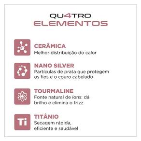 Ele possui 1300 W de potencia, alem de ser uma escova 3 em 1: ela seca, alisa e modela. Alem disso, o produto conta com revestimento em Ceramica, Titanio, Tourmaline e Nano Silver, para transformar os seus cabelos do jeito que quiser.
