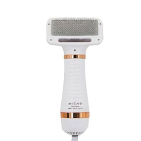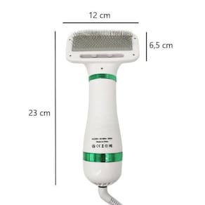 Escova Secadora De Pelos Para Pet Cachorro GatoEsse secador foi projetado para cuidar do seu animal de estimação e te dar mais praticidade na hora de secá-lo. Ela combina secagem com escovação em um só produto e a melhor parte é que faz um ruído silencioso (infeior a 65dB), que não assusta o seu bichinho.Você pode secar e escovar seu cão ao mesmo tempo com apenas uma ação. Agora você não precisa segurar a escova com uma mão e o secador com a outra. Secar, escovar e dar estilo ao seu animal de estimação nunca foi tão fácil.A escova é composta por cerdas de arame fino, que podem penetrar na parte inferior do animal sem arranhar a pele. Pode remover a pele morta ou sujeira e dar uma aparência elegante. Seus animais de estimação vão adorar esta escova porque parece uma massagem quente. Com ela você pode desfazer qualquer nó.É leve e portátil. Seu design ergonômico a torna fácil de segura e usar.Possui dois níveis de temperatura ajustáveis que proporcionam um tempo de secagem menor. Não aquece como uma escova de cabelo comum para proteger o animal do superaquecimento.Bom para o seu animal de estimação. Adequado para cães e gatos.Especificações/características do produtoDimensões: 23 x 6,5 x 12 cmPeso do produto: 370gVoltagem: 220V Potência: 300 WComprimento do cabo: 1,30mCor: BrancoMaterial: ABS e Aço InoxidávelAtenção:1 - O cliente tem até 7 dias corridos, após o recebimento, para devolução do produto (artigo 49).2 - Lembrando que o produto deve retornar sem defeitos e na embalagem original.3 - Imagem Meramente ilustrativa.