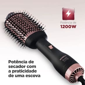 REVESTIMENTO COM ??LEO DE ARGAN: A escova tem revestimento com óleo de Argan, um ingrediente rico em nutrientes e antioxidantes. Com o calor da escova, o Argan penetra no cabelo e deixa os fios mais protegidos e hidratados. Perfeito para a saúde das mechas! ESCOVA 3 EM 1: Você seca, alisa e modela utilizando apenas um produto e com uma única mão. ?? muita praticidade! ALTA POT??NCIA: São 1.200W para secar seu cabelo com rapidez e eficiência. DESIGN OVAL: FACILITA A ESCOVA????O: O formato da escova secadora é perfeito para alisar, além de também ser um aliado para quem quer dar volume às mechas. 3 VARIA????ES DE TEMPERATURA: Ajuste a intensidade do calor de acordo com seu tipo de cabelo. CERDAS MISTAS: Os formatos diferentes permitem alinhar e modelar o cabelo ao mesmo tempo. PONTA FRIA: A ponteira da escova Mondial não aquece e protege suas mãos durante o uso. CABO 360°: O fio é giratório e não enrola durante o uso. Cabo embolado nunca mais!