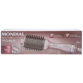 Com a escova secadora 1200w golden rose da mondial, nunca foi tão fácil deixar o seu cabelo pronto para qualquer ocasião. Você pode sair de casa como sairia de um salão de beleza, pois graças ao seu design oval ela alisa, modela e dá volume ao cabelo, facilitando a produção de diversos penteados, tudo isso unindo o poder do secador aliado à praticidade da escova em um único produto. Ela possui 3 velocidades diferentes, controle de temperatura e tecnologias como revestimento cerâmico, que distribui o calor de maneira uniforme, garantindo uma maior proteção e mais rapidez para secar e modelar seu cabelo, enquanto emite íons negativos, que selam a cutícula dos fios, eliminando o indesejado efeito arrepiado (frizz), proporcionando mais brilho e maciez para te deixar com cabelo de capa de revista. Tenha cabelos perfeitos e cutículas super alinhadas em poucos minutos. Alta tecnologia em apenas um movimento, com um design revolucionário que conta com saídas de ar e fluxo intenso, cerdas em 360o, mistas flexíveis e com pontas arrendondadas que deslizam suavemente desembaraçando e alinhando os fios sem danificá-los. Seu visual impecável na palma da sua mãoatenção: esse modelo não é uma escova rotativa.