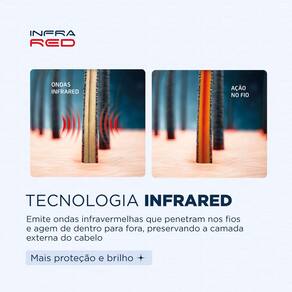 TECNOLOGIA INFRARED: Emite ondas infravermelhas que penetram nos fios e agem de dentro para fora, acelerando a secagem, enquanto preservam a camada externa do cabelo. Garantia de mais proteção e brilho na sua rotina capilar!