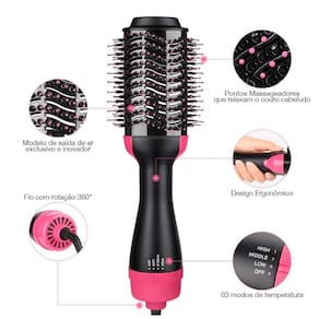 Seca: selecione dentre as 3 temperaturas para secar os fios com agilidade Alisa: Cabelos lisos com efeito de salão de beleza Modela: Volume e brilho de forma prática Pode ser usada com cabelos úmidos Atinge a temperatura de 140C Cabo giratório 360 para maior flexibilidade Seletor de temperatura: 3 opções de ar quente Design leve e ergonômico Ponta fria para facilitar o manuseio Modelo: 3 em 1 Cor: Preto e Rosa ATENÇÃO - Voltagem: 110v Não é bivolt Funções: Secador e Alisador Potência: 1000 w Temperatura: 3 níveis Selecionáveis Característica: Funções de Jato de ar quente - Gerador de íons - Cerdas Flexíveis Velocidade: 3 níveis de velocidade.