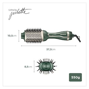 A Escova Secadora da Linha by Juliette Qu4tro Elementos traz um revestimento especial enriquecido com infusão de Cerâmica, Titânio, Tourmaline e Nano Silver. Esses 4 elementos, juntos, protegem seus fios e garantem uma aparência mais saudável aos cabelos, com brilho intenso, maciez e sem frizz. Cuida da sua beleza com a Escova Secadora ES-JU-02.