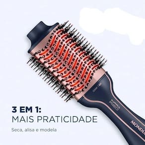 - Essa escova possui tourmaline íon? Sim, a Escova Secadora Mondial Infrared Es-01-Ir Azul - Bivolt possui revestimento cerâmico com tourmaline íon, que libera íons para eliminar o frizz e proporcionar mais brilho aos cabelos.