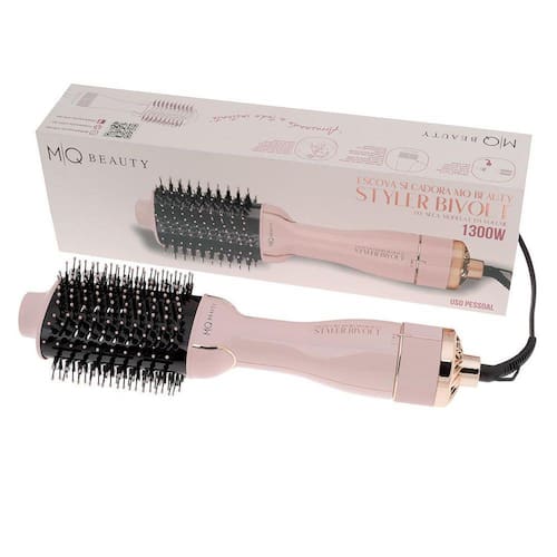 Lançamento mq beauty - escova secadora styler bivolt 1300wAtendendo a pedidos das nossas clientes, trouxemos mais uma novidade mq beauty.Nossa escova secadora mq beauty styler, a qualidade que você já conhece, mas agora na versão bivolt com potência de 1300 watts.O lançamento da mq beauty é uma poderosa escova secadora de modelagem 3 em 1 que une: A potência de um secador de 1.300w; A modelagem de uma escova; O alinhamento de uma prancha.Assim, ao mesmo tempo em que seca o cabelo, ela proporciona fios mais brilhantes, lisos ou modelados. Você pode alisar ou fazer pontas lindamente enroladas de forma rápida e prática.Seca e modela com mais maciez, brilho e menos frizz:Desenvolvida com uma combinação de cerâmica ionizada, a escova secadora mq beauty styler possui revestimento black ceramic que protege o cabelo do excesso de calor com distribuição uniforme da temperatura que penetra no cabelo rapidamente de dentro para fora, deixando o cabelo mais brilhante, ao mesmo tempo em que reduz o frizz e a estática.Rapidez e praticidade:Suas cerdas desembaraçantes em nylon com dupla altura aumentam a tração dos fios e combinadas a uma potência de 1300w, ajudam a secar e modelar o cabelo de forma mais simples do que com um secador e uma escova tradicional.Ideal para viagens:Compacta e bivolt chaveada, você pode levar a escova secadora styler para todos os lugares sem se preocupar com a voltagem. Basta conferir a voltagem do lugar que você está e ajustar a chave para a voltagem correta. Pronto, cabelos secos, modelados e lindos em todo o lugar a qualquer momentoPrincipais vantagens e diferenciais: Escova 3 em 1 - seca, alisa e modela; Potência de 1300w; Fluxo de ar 360º; Bivolt chaveado mude a voltagem ajustando a chave ; Simples ajuste de voltagem na lateral: você escolhe 127v ou 220v; Cerdas arredondadas em dupla altura - maior tração ao modelar facilitando o fechamento da cutícula; Diâmetro de 73mm; Perfeito para finalizações das pontas; Cabo giratório de 2 metros; 3 níveis de temperatura; Ajuste de velocidade; Ponta térmica não esquenta ; Black ceramic - protege o cabelo do excesso de calor; Tecnologia íon - proporciona brilho ao cabelo; Design anatômico, moderno e leve; 6 meses de garantia. Peso: 455g; Aquece, tem vazão de ar mas não é rotativa.Recomendações: Antes de conectar o produto na tomada, certifique-se de ajustar na chave lateral a voltagem correta de acordo com a tomada. Marca: Mq Beauty