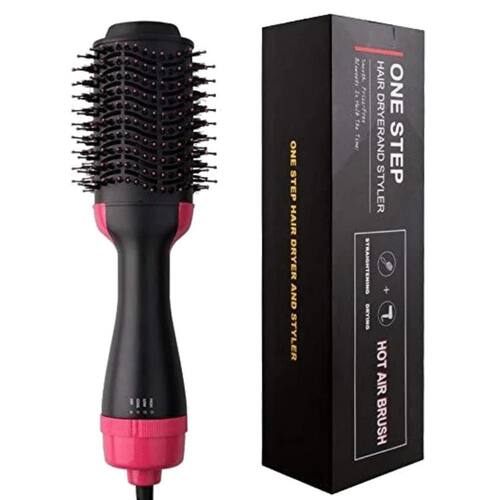 Escova Secadora One Step - Seca, Alisa e Modela 3 em 1: Escova alisadora Profissional e Multifuncional Modeladora, Alisadora e Secadora Tenha em casa um verdadeiro salão de beleza 110v 1. Secador multifuncional:Esta escova de ar quente é a combinação perfeita de secador de cabelo, modelador de cabelo, alisador de cabelo, que permite que você para secar, endireitar, enrolar o cabelo apenas em um lado. 2. Dupla finalidade: Perfeito para secar bem como os cabelos molhados e todos os tipos de cabelo. 3.Tecnologia de íons negativos:Os íons negativos divulgados pelo pente de ar quente pode reduzir os danos e aumentar a umidade do cabelo, também pode eliminar o frizz e realçar o brilho para fazer o cabelo macio e sedoso. 4.Superior economizar tempo:1000 W de potência e o maior projeto de ventilação fornecer o direito de calor para uma secagem mais rápida e menos danos, de ar de alta velocidade para salvar o seu tempo, perfeito para o cabelo longo. Especificações: Cor: Preto + rosa Tensão/potência: 110V, single tensão nominal, potência 1000 W Material de aquecimento: fio de Resistência Número de segmentos: 3 Baixo, médio, alto Comprimento do cabo de alimentação: 2 M, rotação de 360 graus Temperatura: 120 graus Celsius Peso líquido: 600g Registro INMETRO OCP 0040 Marca: Step One Ean: 5554419722817