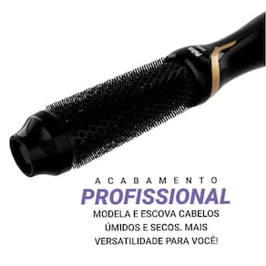 Possui 3 níveis de temperatura, incluindo jato de ar frio, ideais para modelar e proteger diferentes tipos de cabelo. A escova oval de 38mm proporciona volume e definição desde a raiz até as pontas.