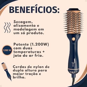 Transforme sua rotina de beleza com a Escova Secadora Gloss: o segredo para cabelos secos, modelados e radiantes em poucos minutos! Com design oval e cerdas de nylon de dupla altura, ela oferece alisamento eficaz, volume na medida certa e brilho intenso.