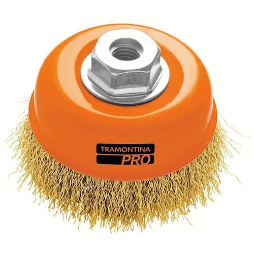 Escova Tipo Copo Arame Ondulado 4'' Tramontina Pro Tramontina Escova Tipo Copo Arame Ondulado 4 Tramontina PRO Tramontina - A linha de escovas da Tramontina PRO é utilizada para fazer a remoção de rebarbas, ferrugens, pinturas, carepas e respingos de solda, proporcionando acabamento em aços, madeiras, tubos e borrachas. Características Gerais do Produto: Garantia: - Garantia total contra vícios ou defeitos de fabricação.
