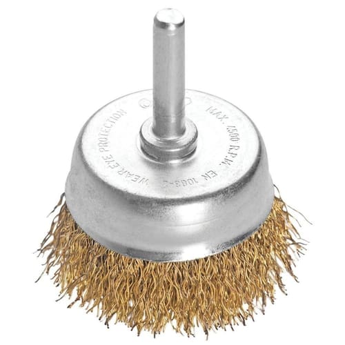 Escova Tipo Copo Arame Ondulado Com Haste 2x1/4'' Tramontina Pro Tramontina Escova Tipo Copo Arame Ondulado com Haste 2x1/4 Tramontina PRO Tramontina - A linha de escovas da Tramontina PRO é utilizada para fazer a remoção de rebarbas, ferrugens, pinturas, carepas e respingos de solda, proporcionando acabamento em aços, madeiras, tubos e borrachas.OrientaçõesCorpo em chapa de aço especial. Filamentos em aço latonado temperados. Diâmetro do filamento de 0,3 mm. Diâmetro da haste de 6 mm. EN 1083. Utilizadas nas aplicações de remoção de rebarbas, ferrugem e pintura de nível leve em aços, madeira e borracha. Utilizadas com furadeiras e retificas retas com rotação até 4500 rpm. As ferramentas são submetidas a testes de aplicação prática para garantir sua resistência mecânica em intenso. As ferramentas são produzidas e testadas conforme normas específicas.ObservaçõesUse óculos, luvas e outros equipamentos de proteção de acordo com a tarefa a ser executada. Armazene as escovas em protegido de umidade, condensação, chuva, água, ácido ou outros líquidos agressivos e vapores que possam causar oxidação nos filamentos e partes metálicas das escovas. Tenha cuidado com a ponta dos arames, pois eles podem ferir o usuário. Nunca use escovas que apresentem . Não altere as características da escova. Use as escovas somente nas máquinas recomendadas. Nunca ultrapasse a rotação máxima da escova. Sempre que possível coloque o corpo de modo a evitar ser atingido pelas partículas projetadas durante a escovação. Não use roupas largas. O cabelo longo deve ser protegido por uma rede e capacete. Evite pressão excessiva da escova na peça. O excesso de pressão reduz a eficiência da escova e pode provocar na máquina. Proteja as mãos de todas as partes rotativas durante o processo de escovação. Armazene em limpo e seco.Características Líquido0,0700 Bruto0,0830 kg.Metragem0,000819 m.Dimensões Embalagem (Compr. X Larg. X 90x 70 ões Produto (Compr. X Larg. X 60x 50 ão Extra A6,0 ão Extra B60,0 ão Extra C50,0 ão Extra D16,0 mm. Características Gerais do Produto: Garantia: - 1 Ano