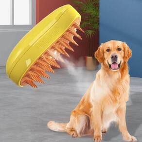 Escova multifuncional para animais de estimação com vapor integrado para cuidados e massagem. Design resistente e durável com cerdas de borracha macia. Funcionamento silencioso.Tempo de aquecimento